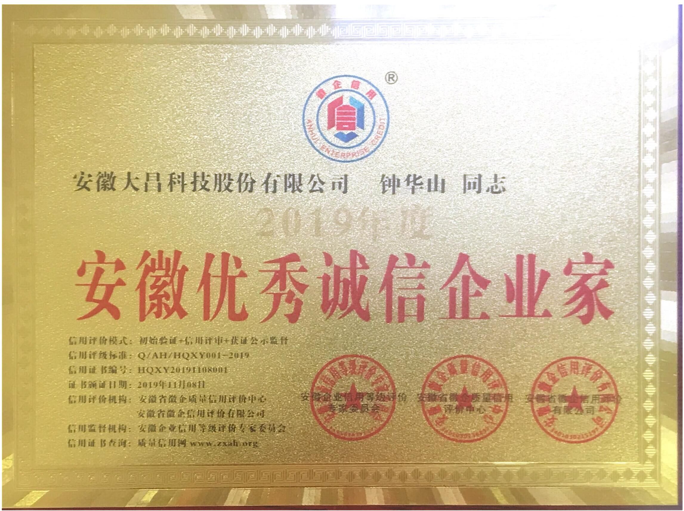 安徽优秀诚信企业家